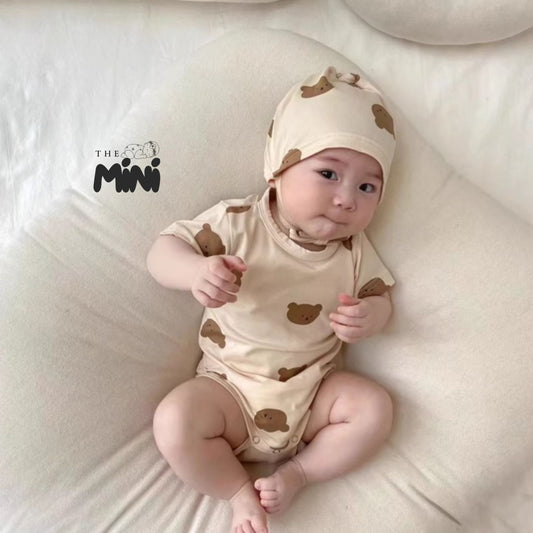 Set gấu iu - 2 món bodysuit tay dài kèm nón - M011B